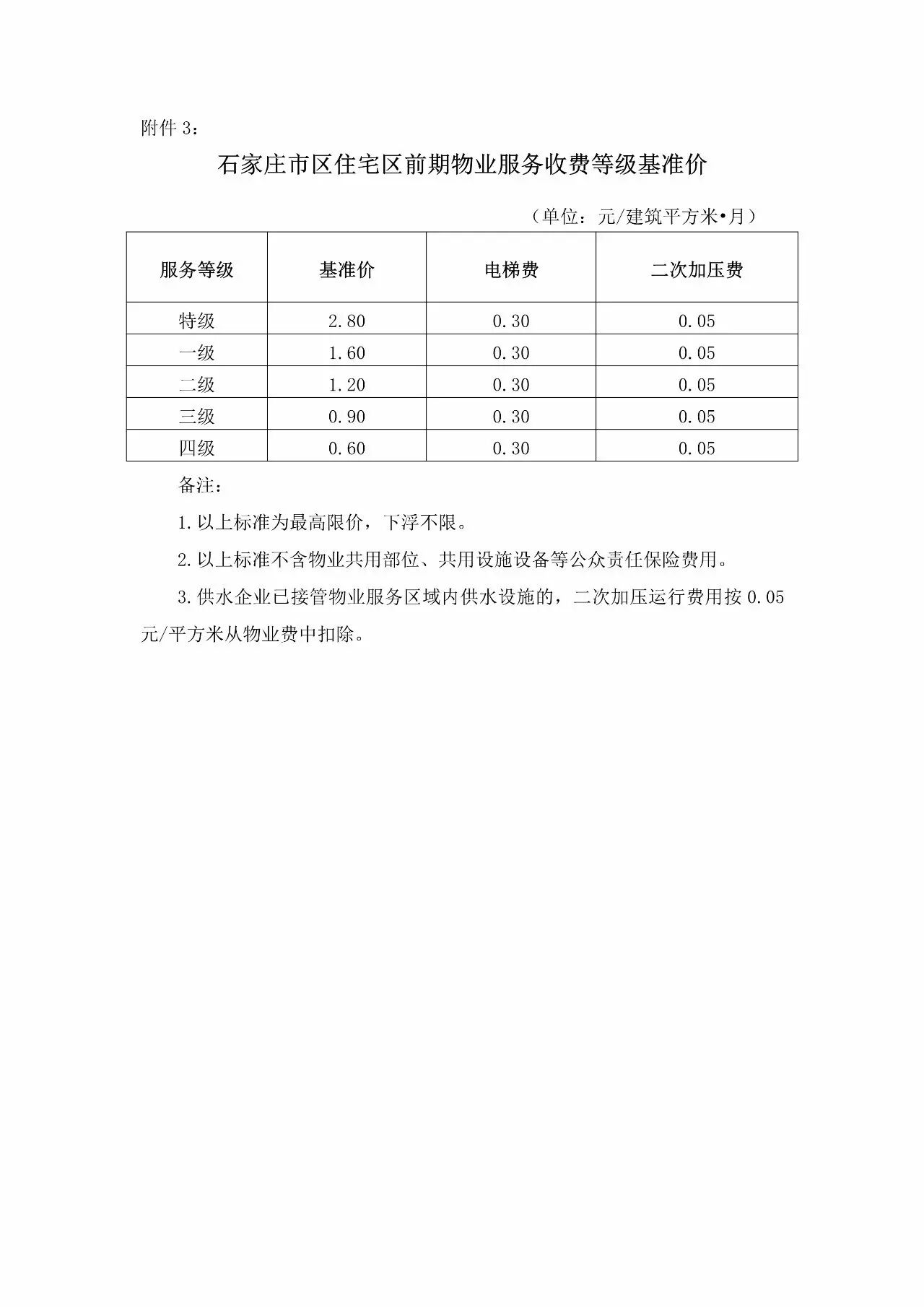 3. 石家庄市区住宅区前期物业服务收费等级基准价